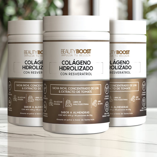 Kit x 3 Colágeno hidrolizado con sacha inchi y resveratrol - sabor almendras sin edulcorantes
